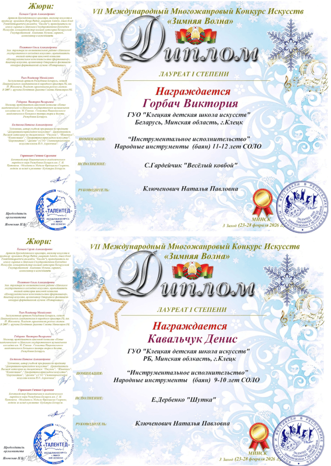 Победа в VII Международном многожанровом конкурсе искусств «Зимняя волна» г.Минск