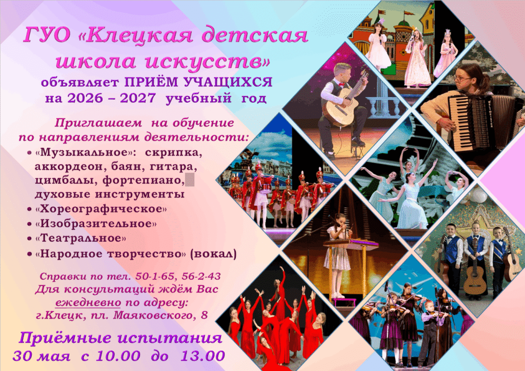 ГУО «Клецкая детская школа искусств» объявляет приём учащихся на 2026-2027 учебный год