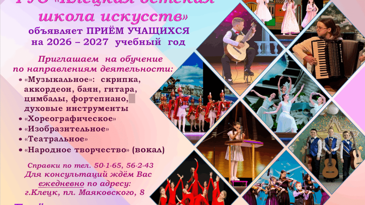 Приём учащихся от 6 до 11 лет включительно осуществляется на 5-летний и 7-летний срок обучения (зависит от возраста и индивидуальных особенностей каждого ребенка)
